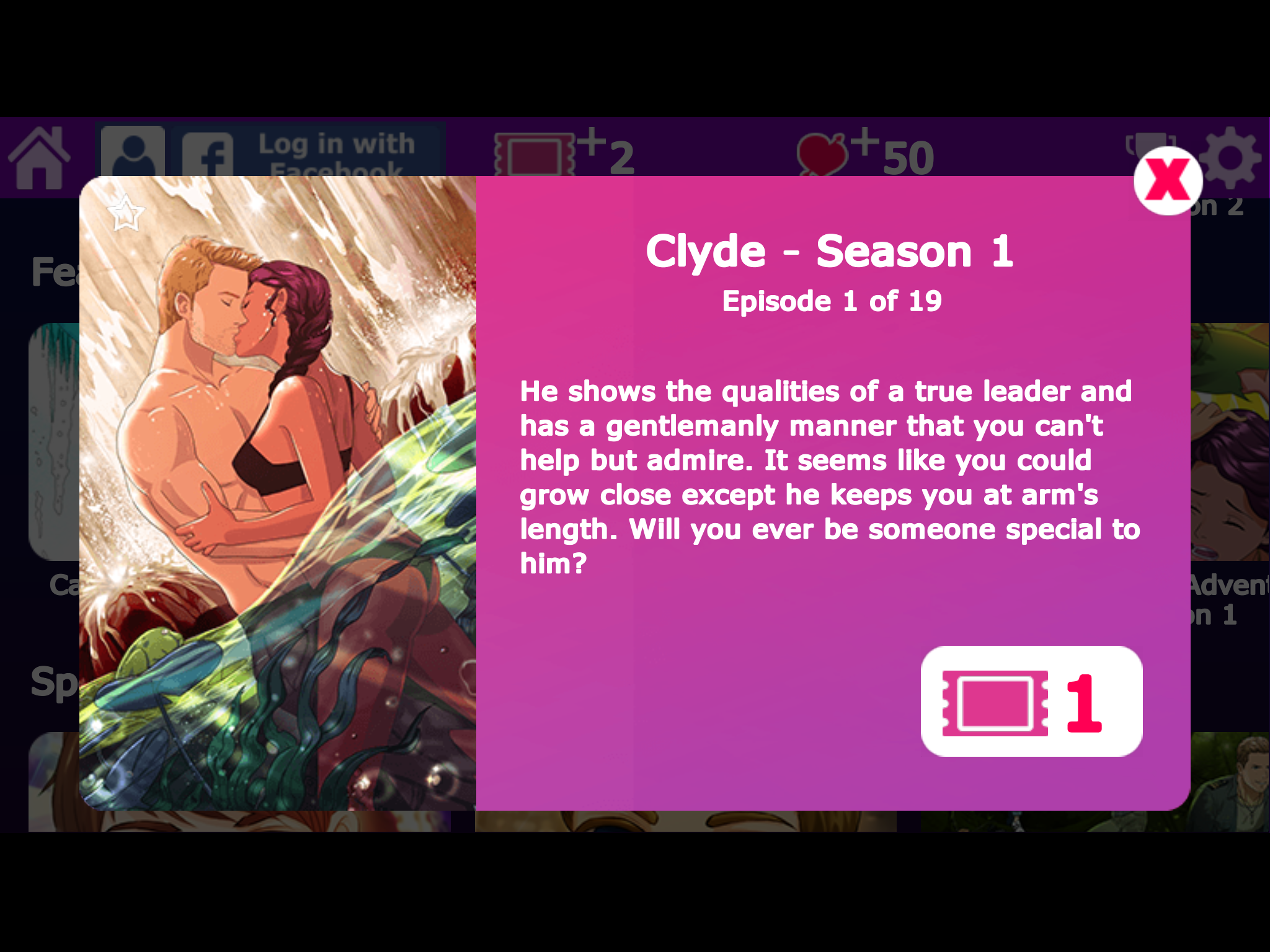 Lovestruck is a free ticket based portal app and the new home of all of the former AmeMix titles. However, instead of purchasing routes as you would with their other paid apps players can use in app currency (Tickets and Hearts) to read through stories in short episodes, rather than in the previous route based format. Essentially, Voltage is doing away with their pay per route apps in favor of the ticket based freemium format.