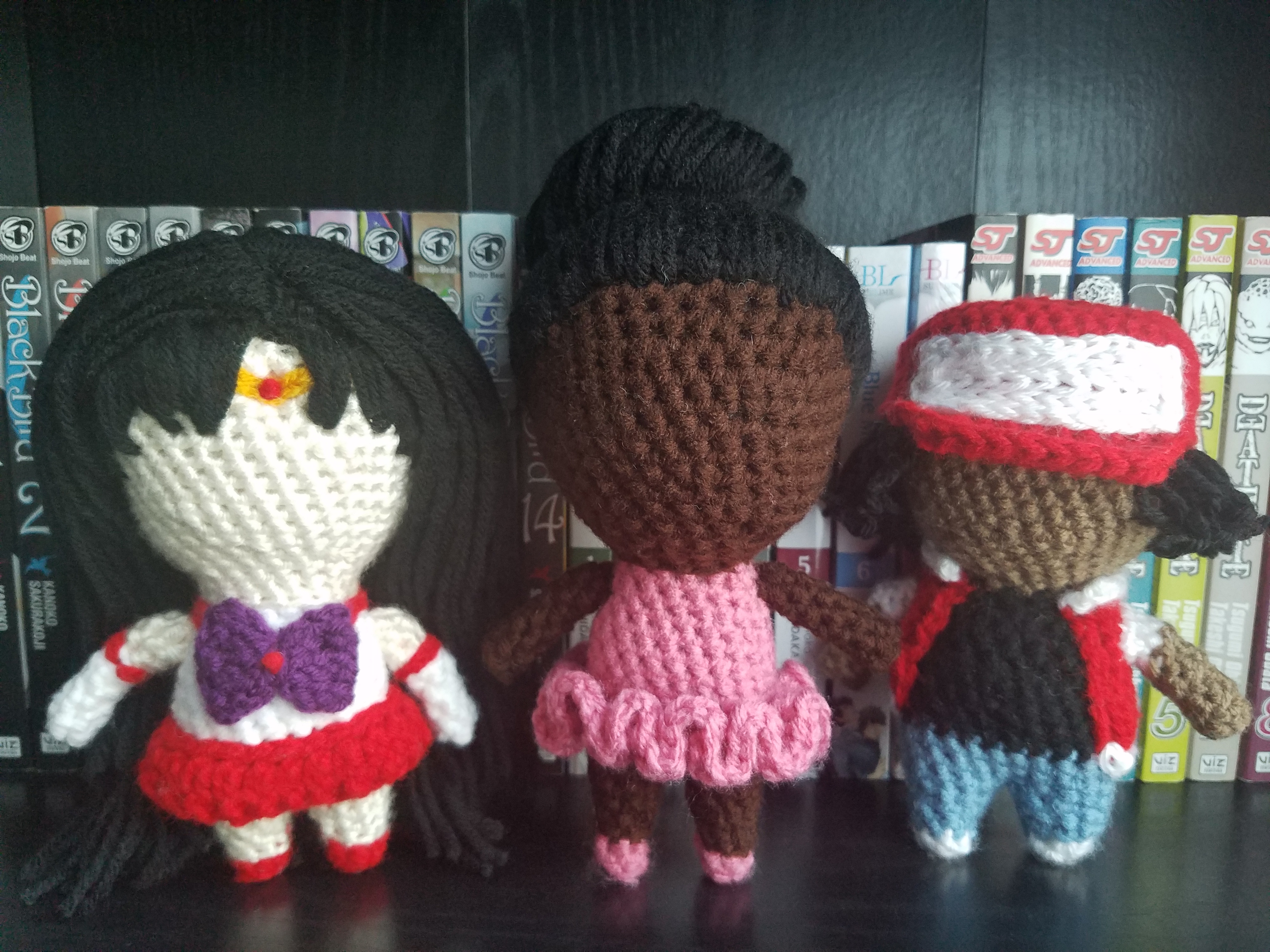 Since crocheting takes up a large part of my free time, I haven’t been as active on WordPress as I once was (I’m working on finding a balance, I promise), so I wanted to integrate my crocheting into this blog and the best way I could think of to do that was with a brand new post series…. yeah, I know, there are plenty of those here as it is… but, for my sanity (and the good of the universe), this series won’t follow a strict schedule. So, some weeks there will be one or two Crocheting While Otaku posts and other weeks, there won’t be any, it’ll depend on my moods… Also, this won’t be anything fancy, just a bit of insight into my crocheting process and some of the projects I’m currently working on. From time to time, I’ll go back and spotlight one of the dolls from my store, and give you guys a bit of background on the character and/or why I chose to make it, etc.