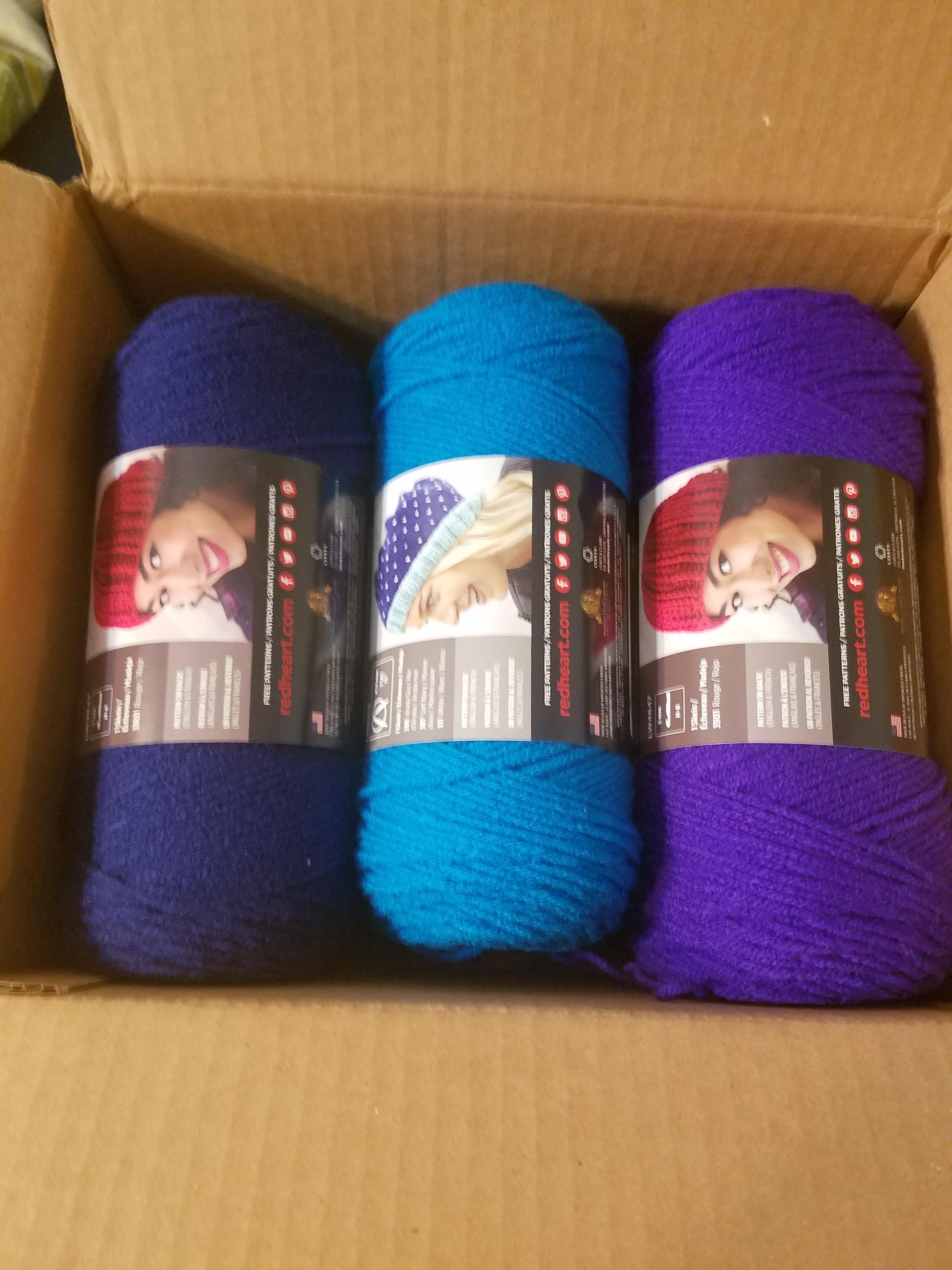 I usually use Red Heart Super Saver acrylic yarn, since they have a huge selection of colors and they’re pretty affordable. But, if I can’t find the color I need/want there I’ll just default to Lion Brand or whatever I can get my hands on.