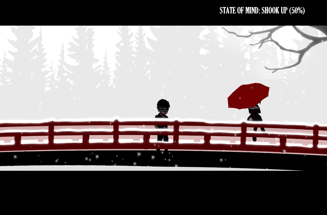 The first thing that stands out about Chromatose is its highly stylized artwork which relies on distinctive bold coloring that runs the entire color spectrum. Each nightmare world is assigned a specific color. There are nine in total and each one is a representation of it’s occupant and the circumstances surrounding their comatose state. However, in the demo you only have access to the Blue, Red, Black, White, and Pink nightmare worlds. Each one is unique from the other, with one taking the form of a locker room and fighting ring, and another a snow covered forest, each local offers a unique visual experience. As an added bonus, all of the backgrounds are animated, from slowly falling sakura petals to the rippling of water, the scenery is always in motion, which brings the world of the game to life. You aren’t just playing a game, you’re a part of the action!
