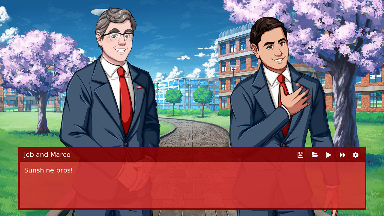 So, technically this one is just a demo, but with a premise like this I just had to add it to the list. Grand Old Academy is the dating sim no one really asked for, but exists anyway… Have you ever wanted to date the 2016 Republican Presidential Nominees? No? Well, in Grand Old Academy you have the chance to date the GOP nominees, instead of hot bishies, you can romance the likes of Ben Carson, Jeb Bush, and even, current President Donald Trump… the gangs all here in this oddly entertaining light hearted satirical demo. In the game you play as a Japanese transfer student that gets drawn into the riveting world of debating at the prestigious Grand Old Academy. Meet and fall in love with one of the seven debaters as you navigate the ups and downs of your new school.