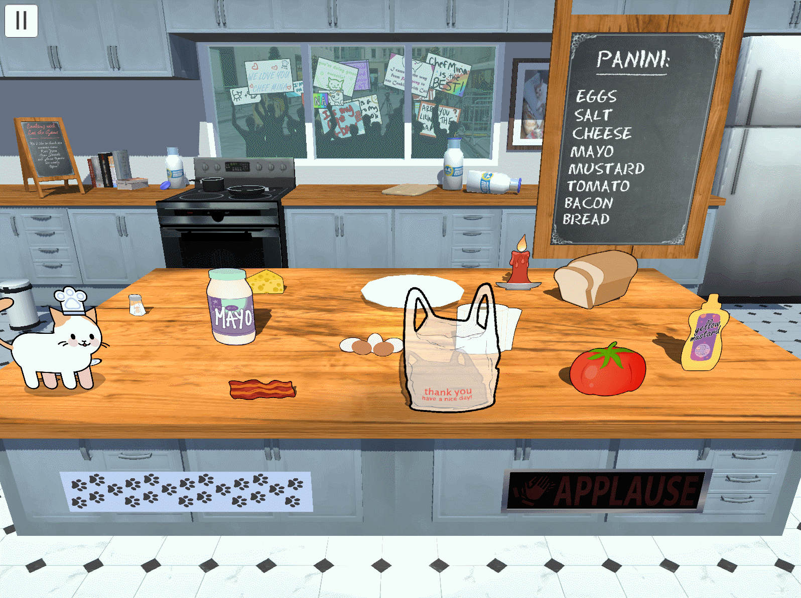 Your kitten-hood dream has finally come true! After years of blood, sweat, and tears at the elite Le Cat-don Mew school in Paris, you’re now a world-renowned chef. Every Sunday morning, millions of adoring fans tune their TVs to channel 629 for your morning cooking show, Cooking with Cat. Hundreds of fans line up outside for a chance to come and watch the magic happen live, since admission is based on who brings the chef the tastiest fish breakfast of course.