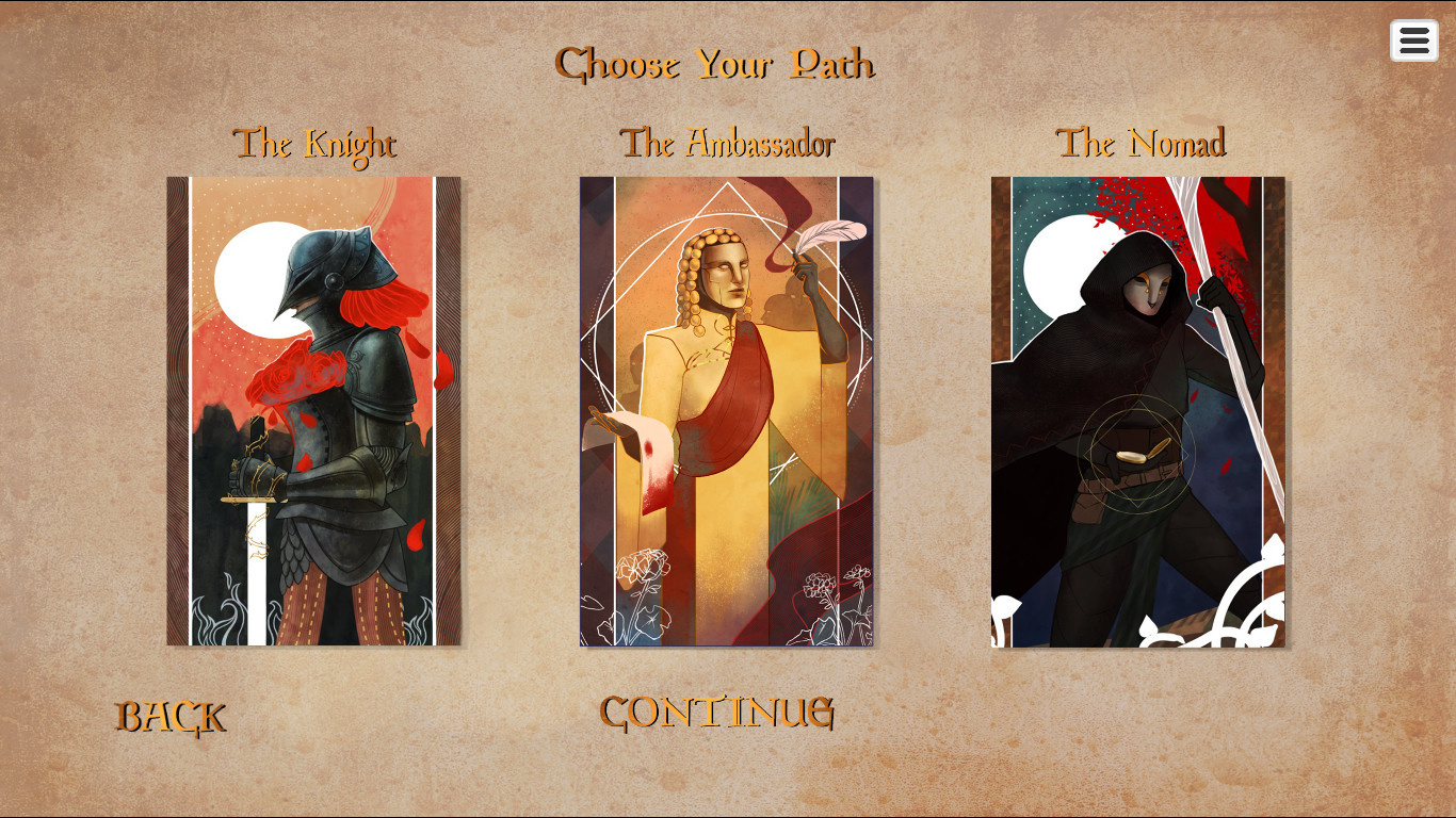 Like it’s predecessor, Errant Kingdom is an episodic release, with new chapters and volumes being released on a bi-monthly basis. Rather than following one set protagonist, you can choose between one of three playable protagonists—the Ambassador, the Knight, and the Nomad—each option changes the flavor of your story and how your relationship progresses with each of the six love interests. Like When the Night Comes, this game also features LGBTQA+ characters and polyamorus relationships, though I want to note that all romance is optional.