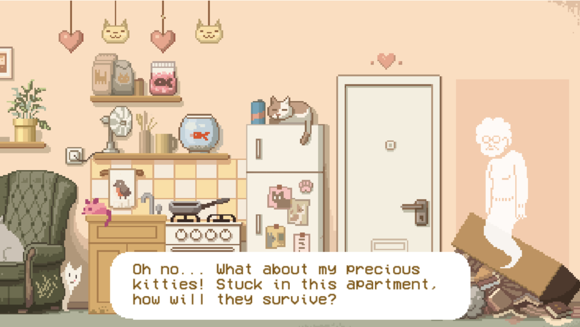 You died. Your unfinished business? The fate of your many cats!