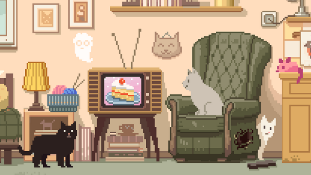 Six Cats Under is a short point-and-click puzzle game developed by Team Bean Loop. In the game you play as a recently deceased cat owner, who must rescue your herd of cats by directing them with your poltergeist powers. The game can be played either from your browser or via download and takes roughly a half hour to complete.