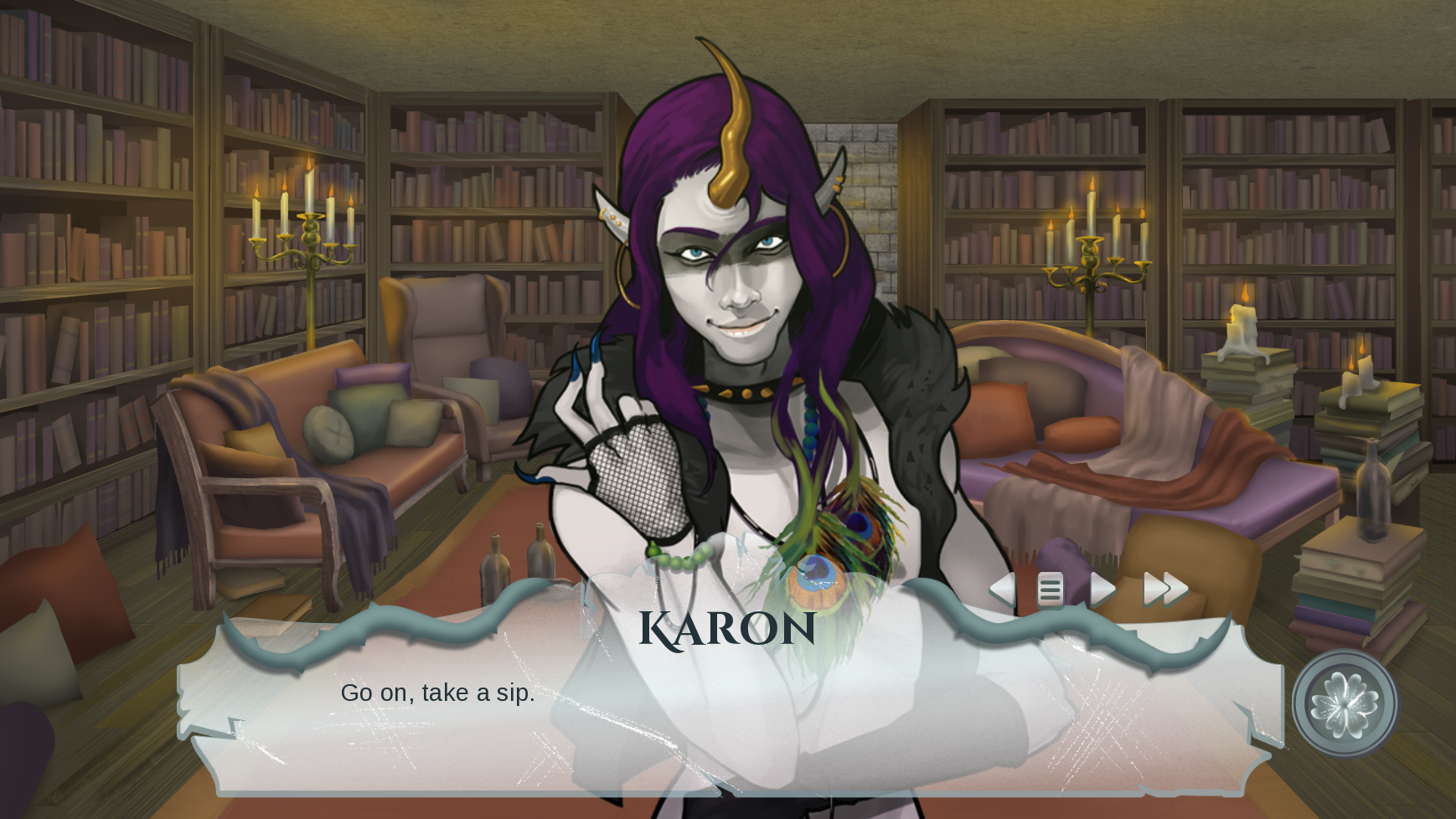 But, I like that they all represent different types of supernatural beings—Brenton is a dragon, Kanon is said to be a unicorn (but he reminds me of an incubus), they don’t say what Seta is, but her affinity for spiders makes me think she’s an Arachne, and Tristan claims to be human… but EVERYONE refers to him as a ‘sad puppy’. I like the love interests well enough, their designs are fun and I like they each have their own distinctive personalities which is only enhanced by the vocal performances. I’ve noticed that a lot of indie games are opting to add voice acting to their releases; this can either work for or against a concept, with poor performances detracting from an otherwise solid story. Thankfully, the performances in the game are great, working with the unique character designs and visuals to bring this more mature fantasy adventure to life.