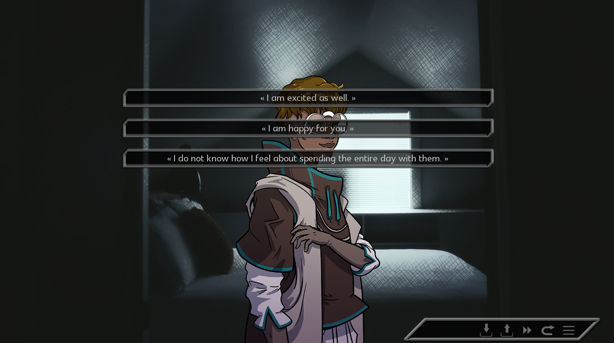 This week, I’m spotlighting the sci-fi mystery visual novel, Xenopathy from Marine Dateologist, a collaborative team made up of indie developers PMscenarios, Bob Conway, and SoulofEA. The game was originally created over two months as part of the 2018 Yaoi Game Jam, and currently only the first part is available. Xenopathy is described as a hybrid romance-mystery, taking place in the future, where humanity has taken to the stars. There they encounter the Ishin, a race of alien symbiotes who can temporarily share a body with a willing host. In the game you play as one of these symbiotes—their first host is a shy bio-engineer named Axton, who is hoping his new alien companion can help give him the courage he needs to confess to his crush. Things don’t go as planned and when the alien bonds with their second host, this time with more darker intentions.