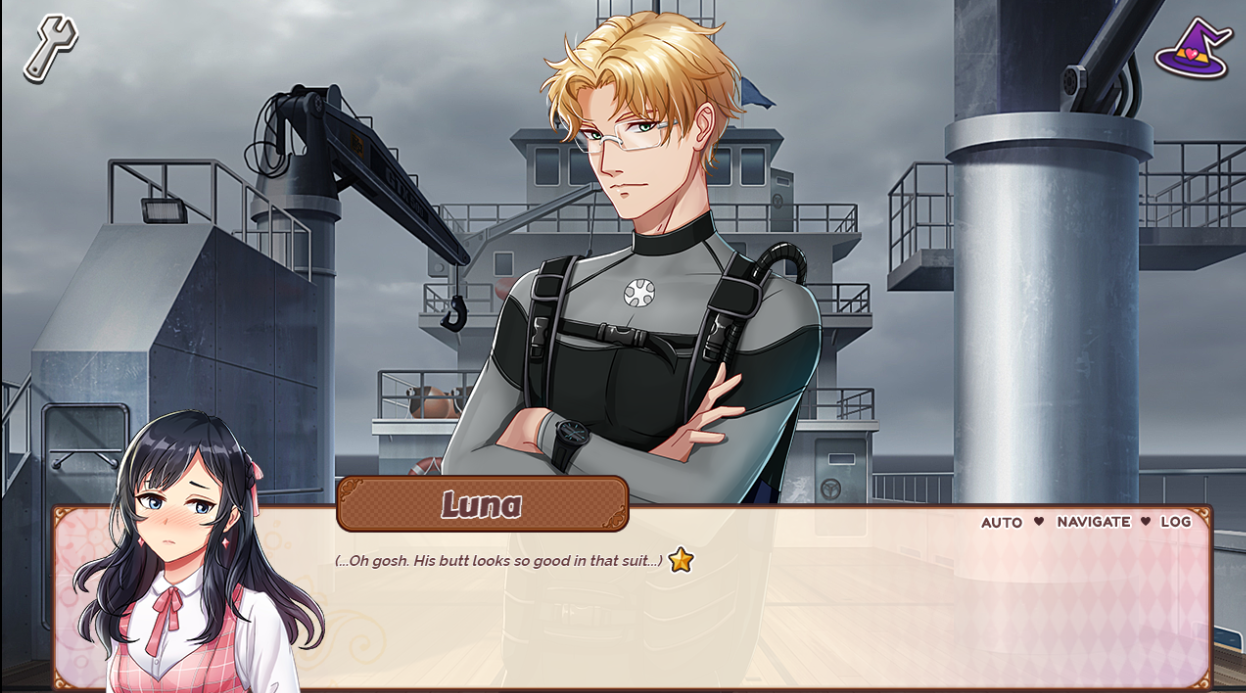 There were also some glitchy moments where text took a while to load or the transitions between scenes took WAY too long. Also, and I mention this because I’m still a bit miffed about this—but in chapter 9 of Marcello’s route the game froze and when I rebooted the game it had erased ALL OF MY PROGRESS. I don’t know if this was my own computer (which is most likely the case) or a glitch in the matrix, I don’t know. But, it’s worth mentioning—and I’m sure the team is working on patches for the game to knock out some of the buggy bits, so it’s not anything that should turn you off the game. Honestly, that aside, I really didn’t run across any deal breakers.