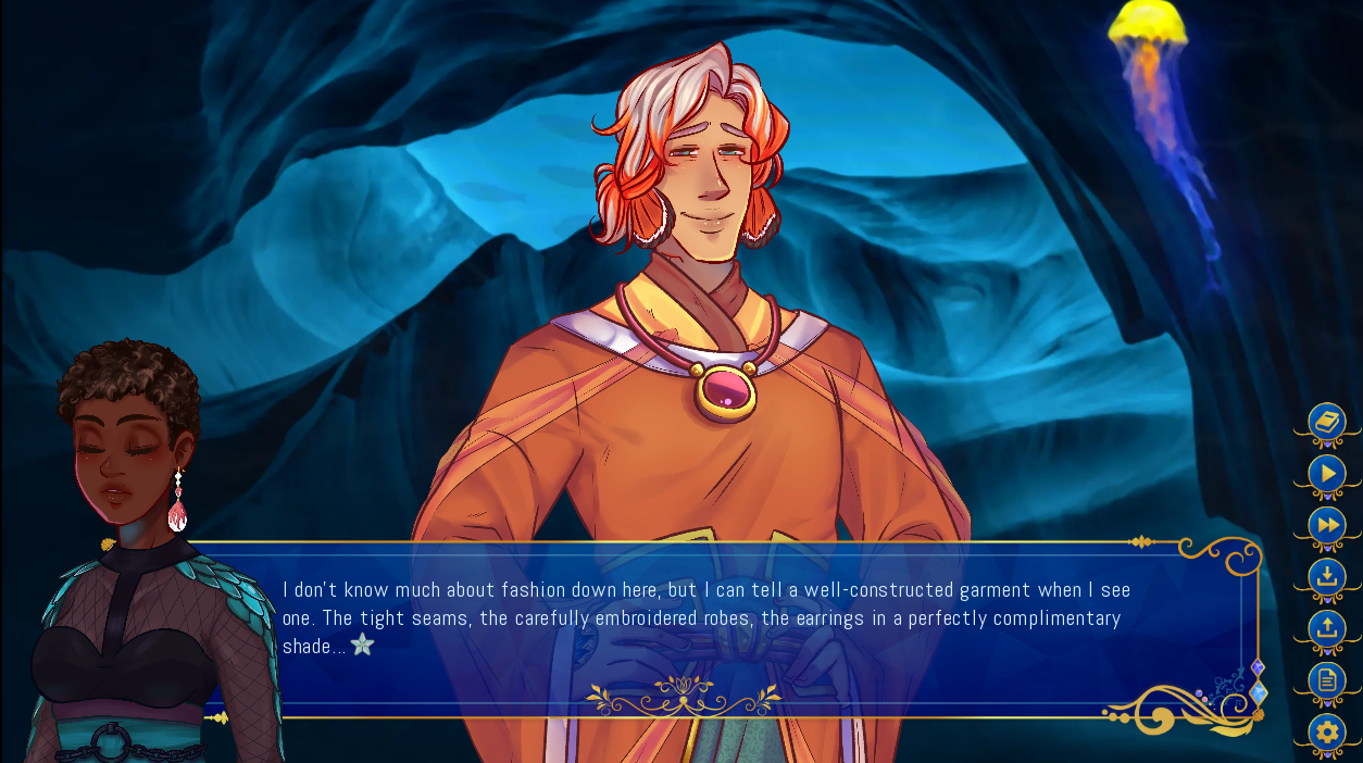 There is just so much to cover with this demo and my only complaint is that it’s just the demo. I want more and I needed it like yesterday! I am definitely curious to learn more about seapeople and the whole underwater kingdom—there is just so much world building potential and the demo just barely scratches the surface. The characters are great and one of the biggest draws for me is the diverse cast—though if I’m being honest, Lemos is probably my fave character right now (Isven is a clooooose second), but all of the love interests are great. Nova is the otome heroine I’ve been waiting for and I can only hope that more developers will take the leap and start giving us more Black and Brown leading ladies.