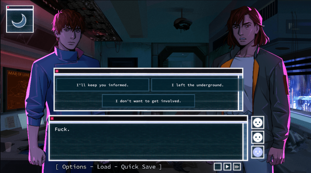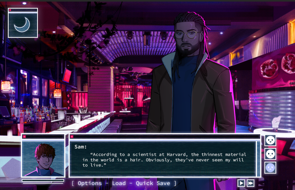 This game looks pretty cool and I love the neon cyberpunk aesthetic. I need to play more dating sims to be honest .