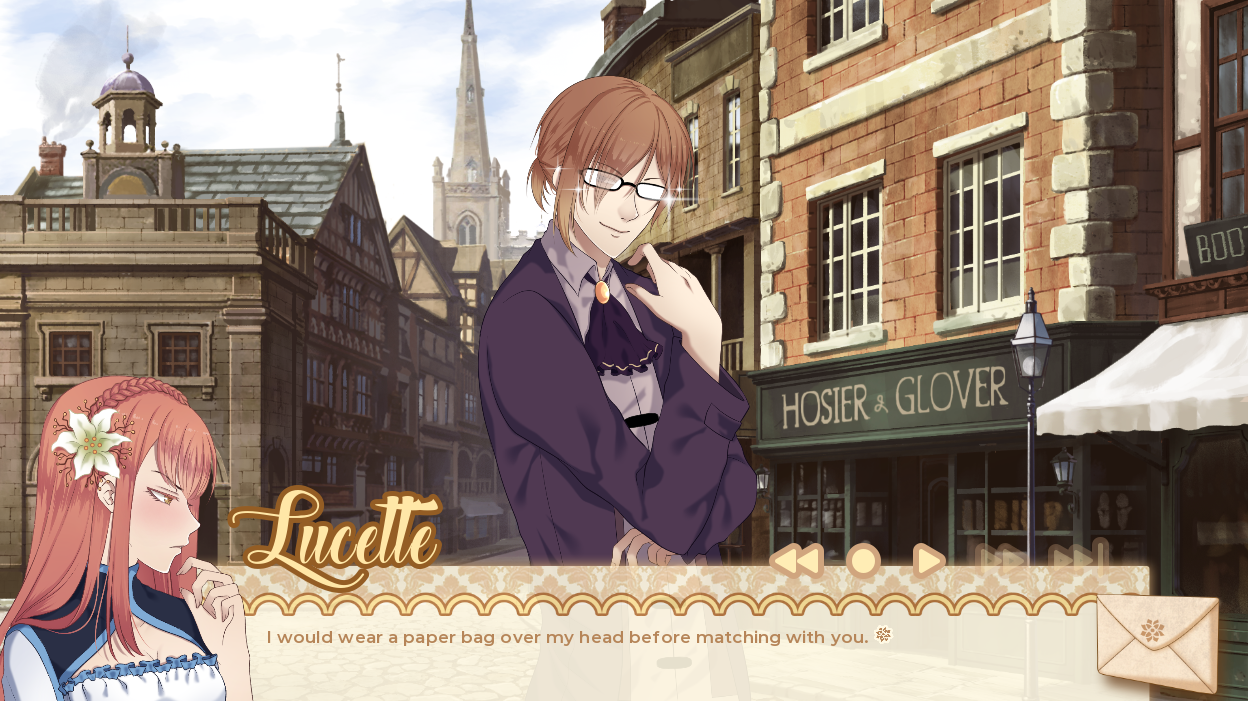Chevalier takes on a much more supportive role in the story, encouraging Lucette to reach out to Sinna; he is her confidant and I like that Chev is a person that she can turn to when things get tough for her. Of course, his flowery words and flirty demeanor can be a bit much at times, but his feelings for Lucette are genuine. You really get the sense that he loves her and wants the best for her and I really enjoyed all the little sweet things he does for her in the route—like when he commissions a local café to make pastries named after her.
