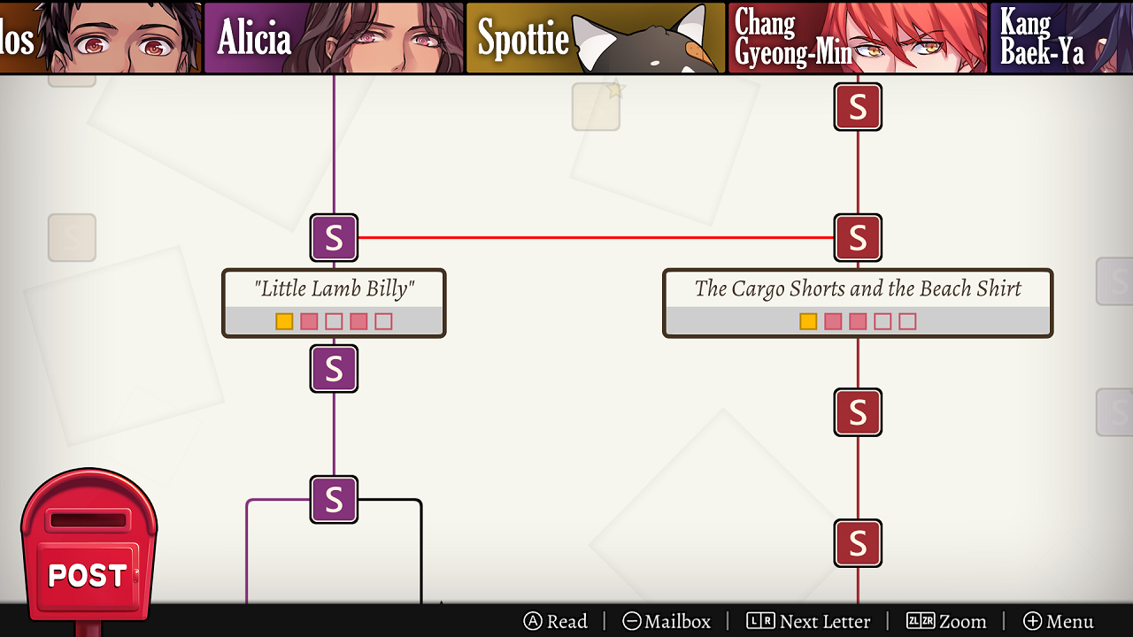 This game is NOT for the faint of heart, WILL deals with some pretty heavy themes that may be triggering to some players. There is a particularly devastating child abuse scenario that even found especially hard to stomach, but thankfully that plotline was blessedly short! The other plotlines shift between moments of levity and soap opera levels of melodrama—which can give you a bit of mood whiplash as you try to keep up with the tonal dissonance between plot points. But, once you find a good rhythm, your sense of morbid curiosity takes over and you find yourself engrossed in the lives of these characters. Despite receiving some letters at the same time, each of the storylines are separated by time and location; so some events that appear to be happening within the same timeframe may in reality take place several years apart.
