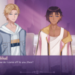 As far as protagonists go, I really liked Varsha/Varshan, they’re headstrong and confident in their abilities both as a witch and in everything else. They’re very proficient in magic and I will admit it’s nice to have an MC that isn’t afraid to show off a bit—in Mikhail’s route especially they pull more than one magical practical joke. Their main conflict is tied up in fixing up the café, but I would have really liked to have seen something more specific to their magic since it is so much a part of their identity. Maybe something like, they lose their magical ability and they have to learn how to function without it, but I also understand that the devs were on a bit of a time crunch with the story.