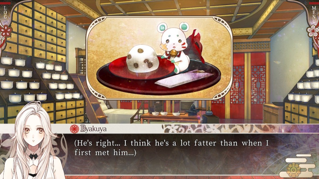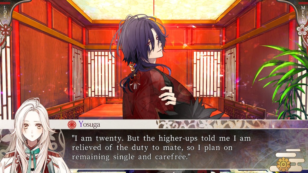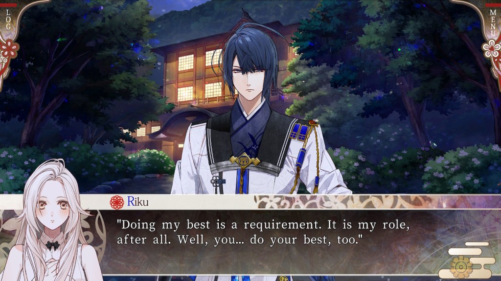 A lot of their relationship was Byakuya denying her feelings for Akaza only to be charmed by him doing something super sweet for her in the next scene–like when he cooks for her (any man that can cook is husband material in my eyes). She eventually succumbs, just in time for the plot to kick in and that’s when things get predictable. Almost every “reveal” I could see coming a mile away and the big finale was just kind of OK for me. The central conflict is directly connected to Akaza and Byakuya’s relationship, so it feels like a more cohesive story when the plot ramps up towards the second half of the route. Honestly, I tend to hate the canon LIs in otome (they’re just so bland) but, I really liked Akaza.