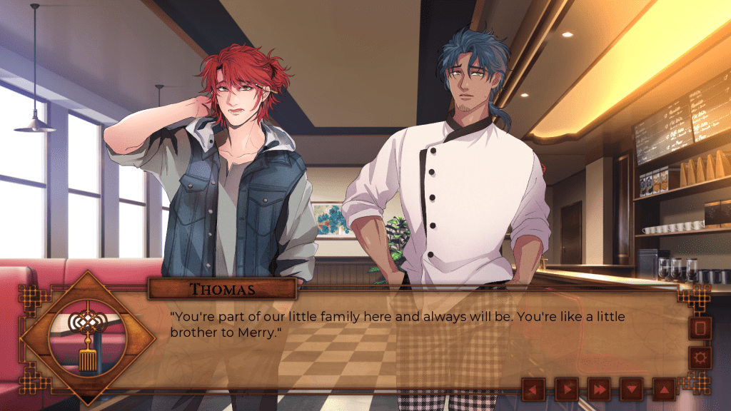 The demo is a nice length (it took me about 2 hours to finish the entire demo) and you get to meet most of the key players in the story. There are three planned love interests, though we spent the most time with Leon in the demo–he’s a sweetheart, so I’m not too upset about that. Even as the “normal” love interest, there’s still an air of mystery surrounding Leon and I can’t help but get the sense that he knows more about Myka’s past than he’s letting on (my running theory is that he’s some sort of secret Hunter), but only time will tell. The other two love interests, Emrys and Solas are only hinted at in the demo, unless Emrys’s cat form counts as screen time. But, I think keeping them shrouded in mystery was a great move since I feel like they are linked with Myka’s family secrets. HOWEVER, there is one character that completely stole the show for me and that’s Thomas, Myka’s (regretfully) married boss (that man is way too fine to not be available) he serves as a kind of father figure to Myka and is just an all around great guy.