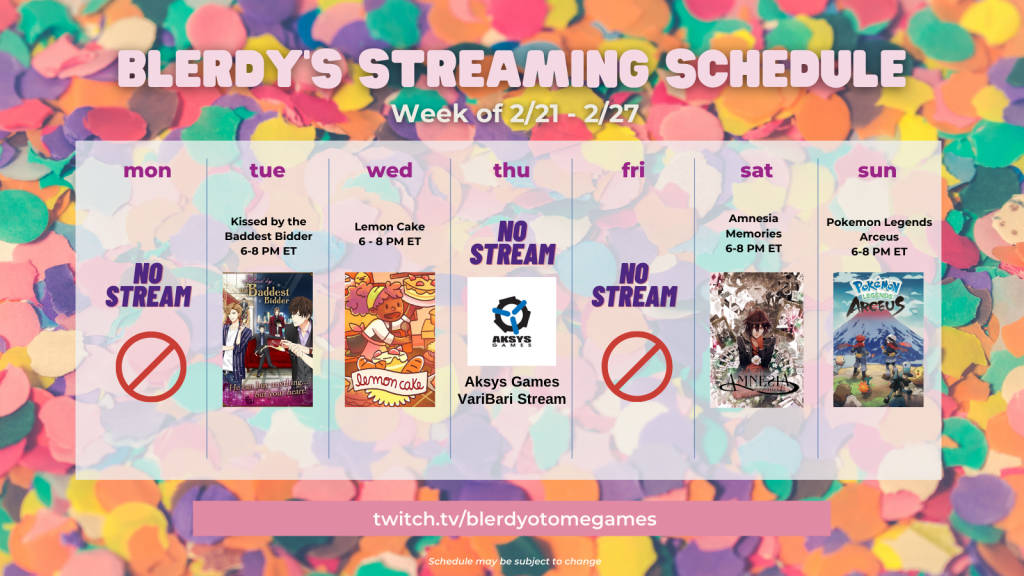 - Thursday 2/24 – NO STREAM Aksys Games VariBari Stream