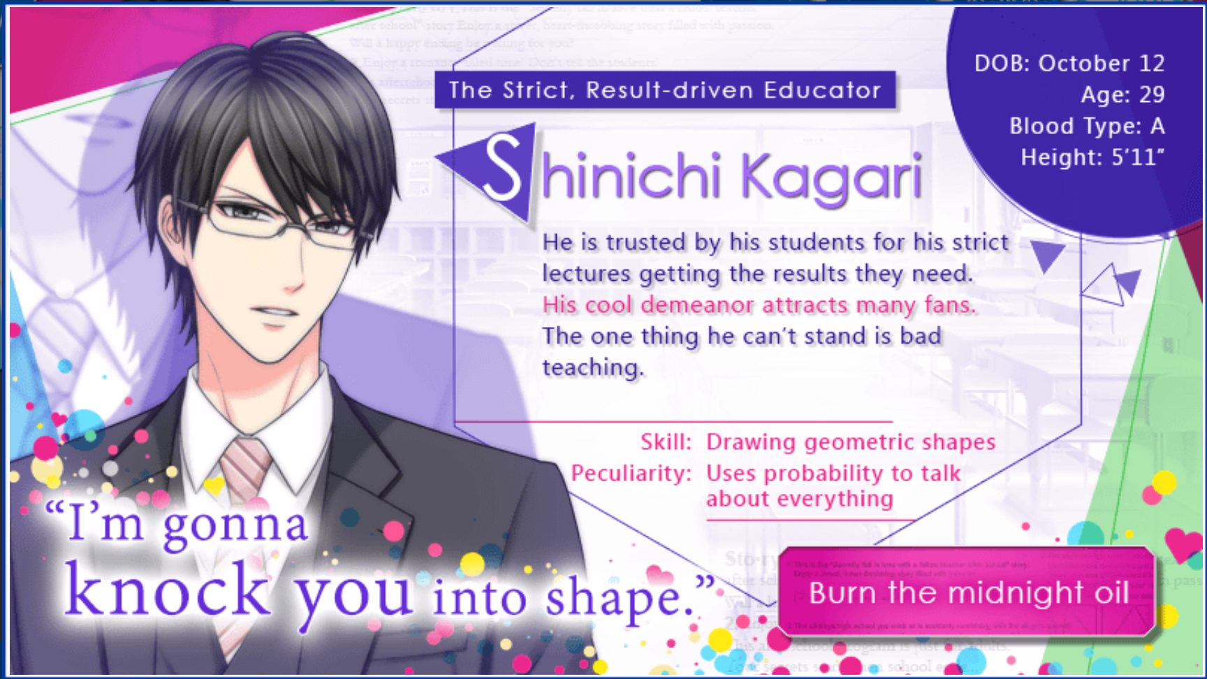 This time around I’m spotlighting five of my favorite megane characters from mobile otome game developer, Voltage Inc! Last year I wrote a Top 10 Voltage Guys list, so expect to see some of the guys from that list making a repeat appearance here, but there will also be a few new faces! Also, I don’t know what to tell you guys, but the fact that all of the guys on this list are dark haired hotties is purely coincidence… though I will admit that I am partial to raven haired megane characters in general. 😛 So without further ado, My Top Five Favorite Megane Men-Voltage Inc Edition!